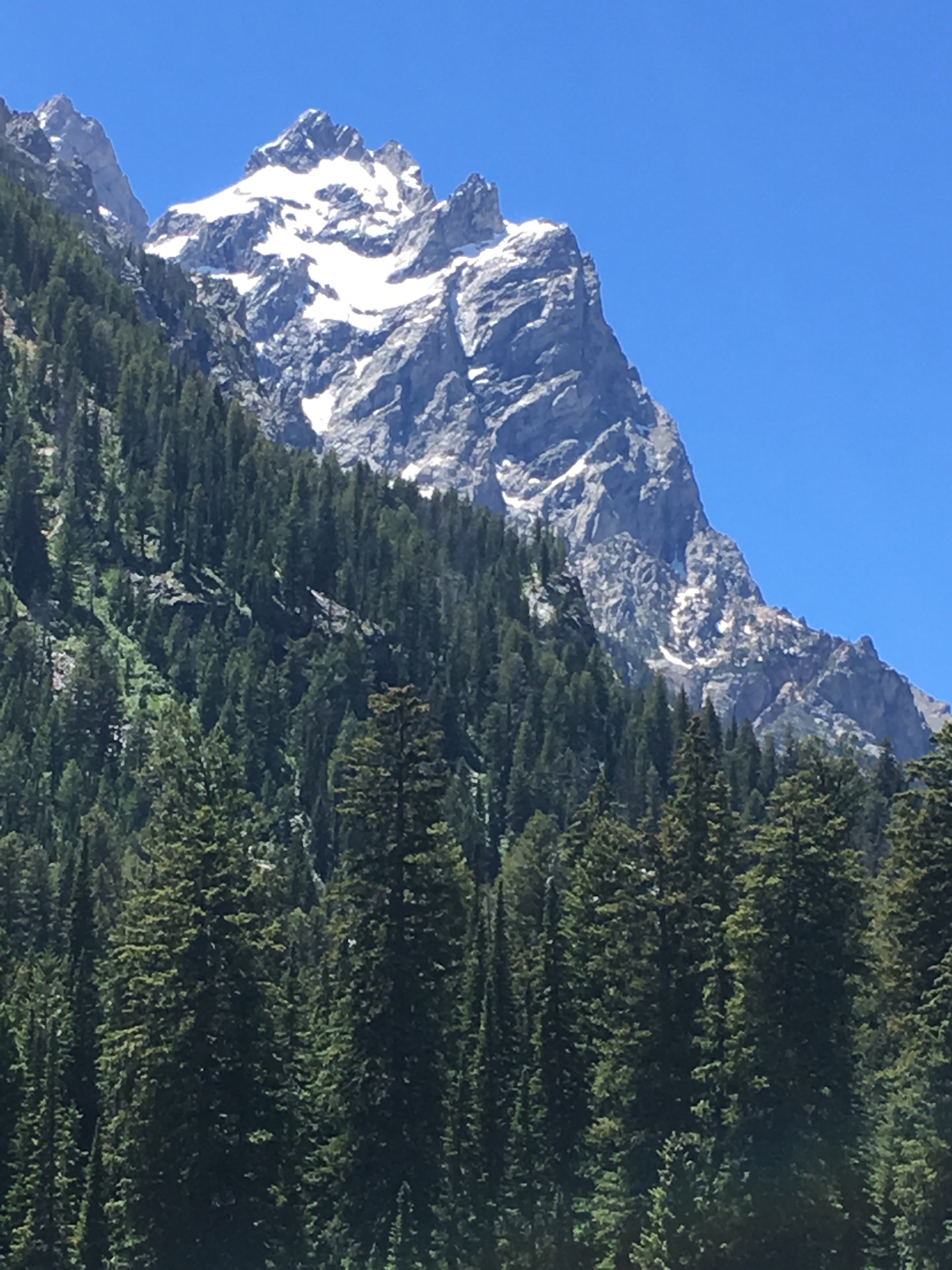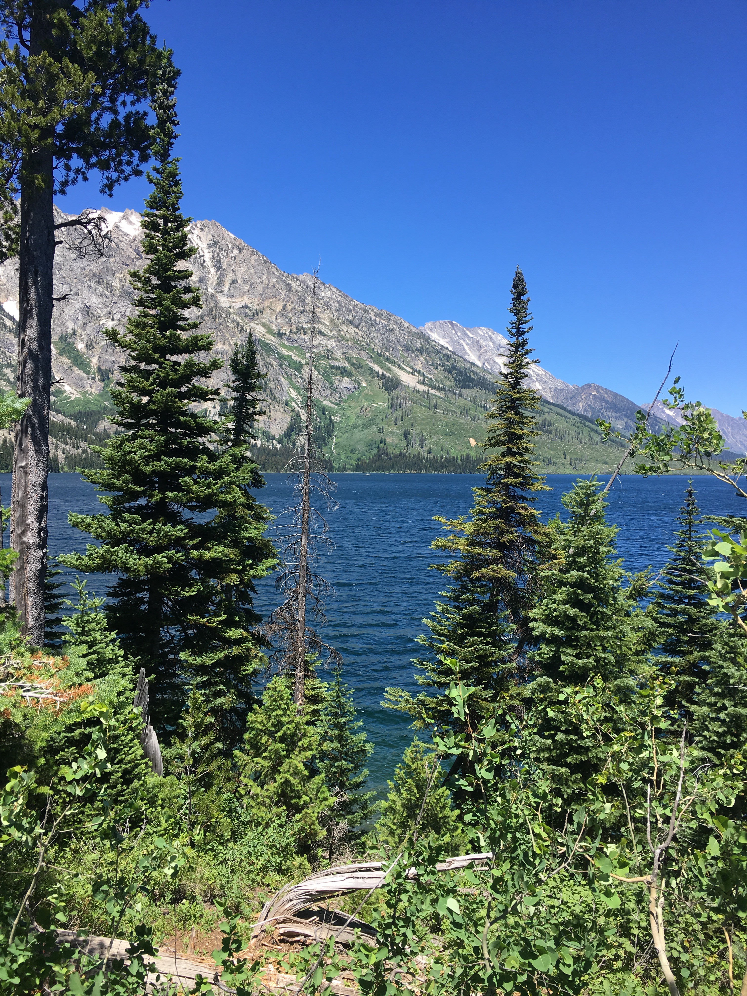 Yesterday, we walked below the mountain range along Jenny Lake. It was more than amazing. It was breathtaking. Snow capped mountains. Lush green forest. Blue lake.