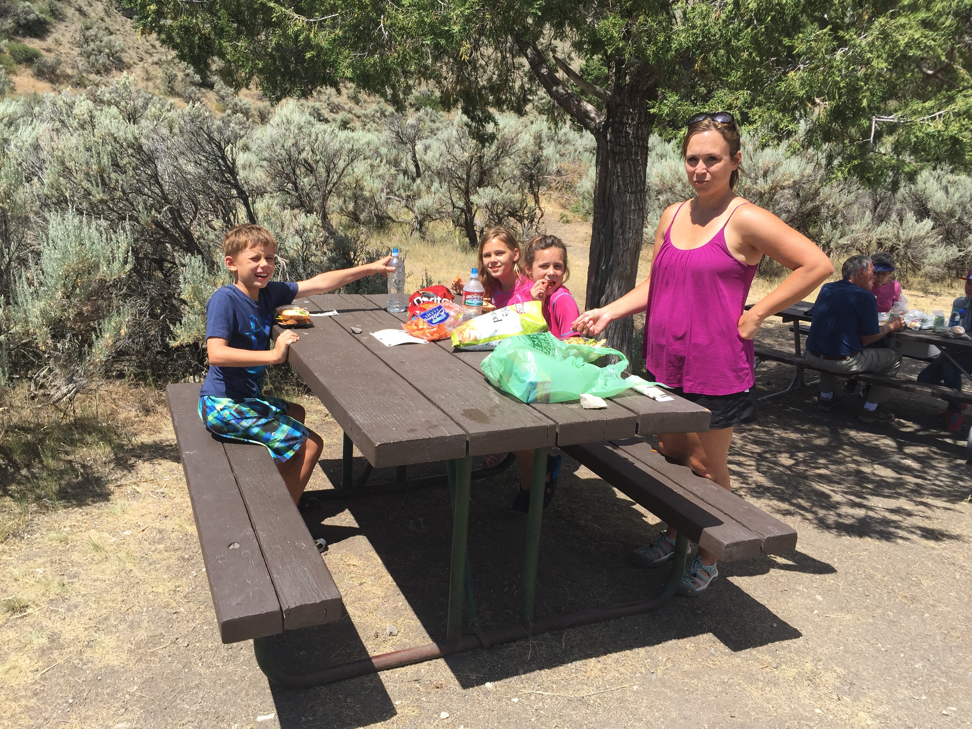 When I was cleaning out my shoes I let go of one and let it flow into a rock. For a little while we were looking for it, and then in five minutes or so I found it. Then on the way to our car I dropped my shorts, another thing was that we saw a bull snake. Then we went to our next hike.