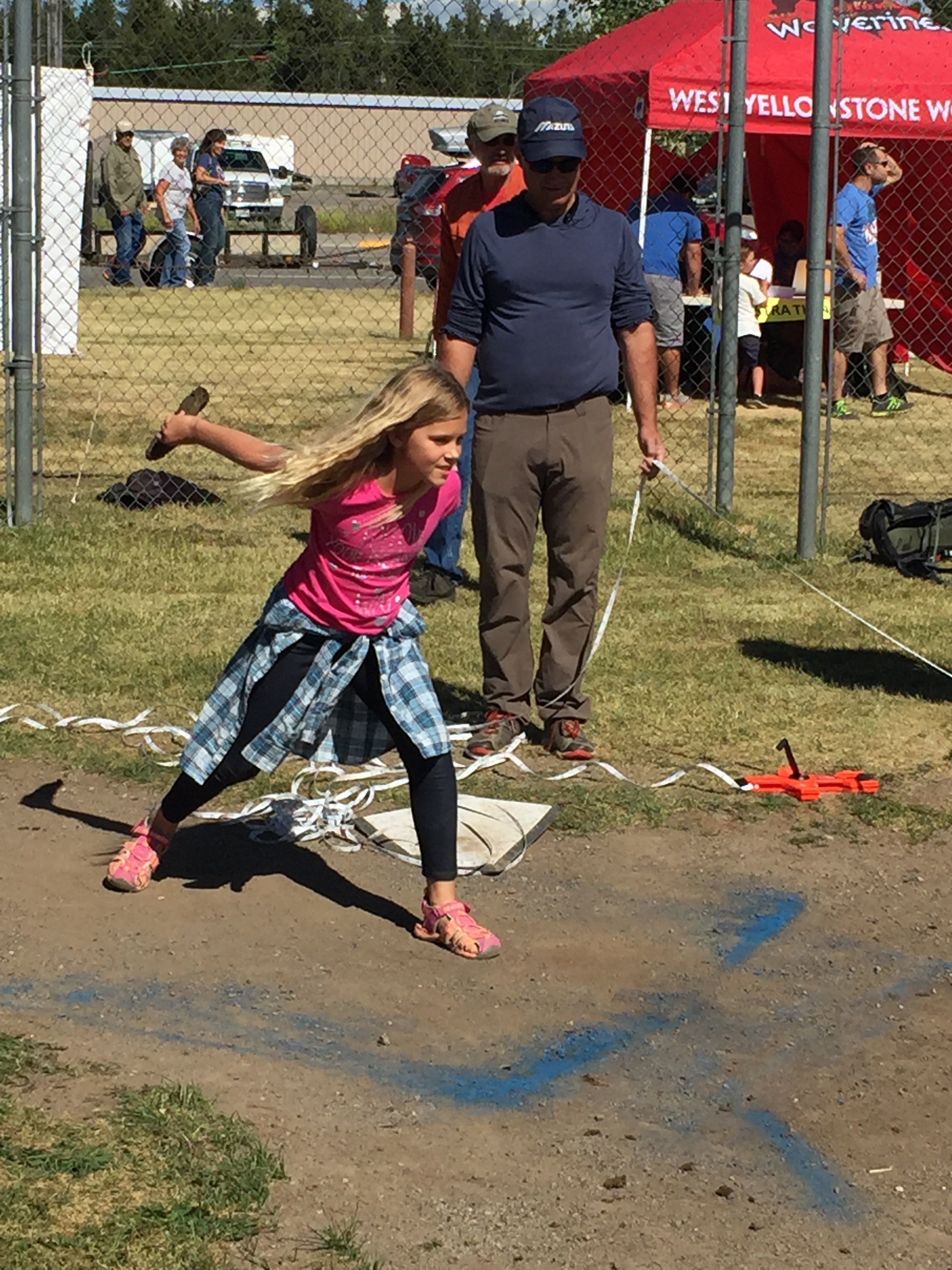 A 4th of July tradition in West Yellowstone, Montana (or at least that’s what they tell the tourists) is to toss bison dung. Yes! You read that correctly. Bison doo is flattened into patties and people come from near and far to fling it across a field. You get three opportunities to fling it the farthest. Your furthest fling gets measured and recorded. The top person in each category (i.e. kids 8-12 – though there were more adults than kids participating) gets a prize. But just for taking part in this great adventure, you get a t-shirt that reads “I flung the dung!” Hahahahahahaha!