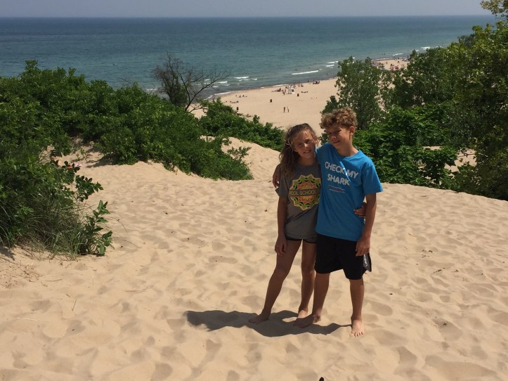 We were headed to my Uncle Vince’s and all the local people recommended The Indiana Dunes(Just the dunes in general). They were very cool and I was surprised that you could walk on them, so we went to the top and then ran down as fast as we could. It was right next to One of the Great Lakes- Lake Michigan. So we walked along it and then we came to another dune and we walked up, looked at the view and then ran down. If you don’t know what dunes are – they are just sand hills. That’s pretty much what they are. One memory I had there was the small sand wall blocked the waves and made a small river, it was a Yellow/Orange. We joked that there was small pieces of gold or it was a river of apple juice. The lakes are like oceans and if you go to Michigan I recommend the dunes on the Great Lakes.