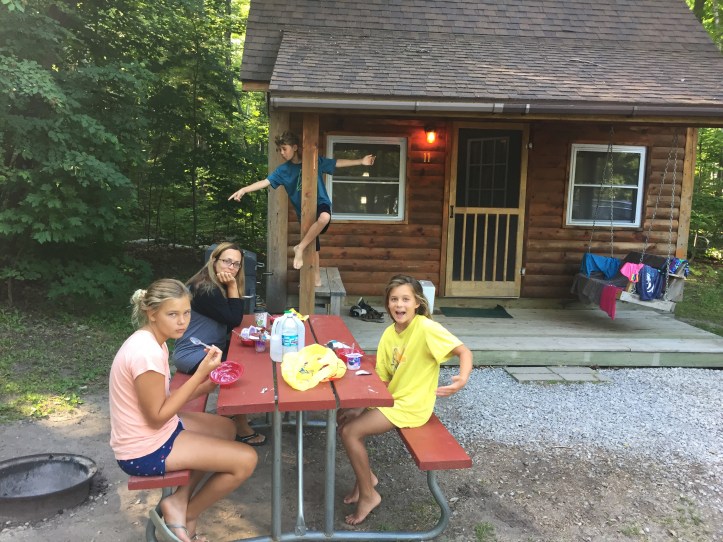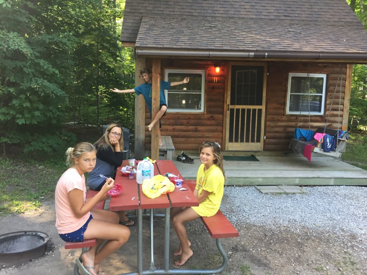 So we stayed at a KOA place when we on the road. We checked in and everything after the we git back from Mackinac Island. So our cabin (very small cabin) had to sets of bunk beds and one full bed. Julia and me slept on top and Jonah slept on the bottom. My parents slept on the full bed. The showers were tiny. We managed to survive the hot, uncomfortable, and disturbing night. But it was a camping treat. Thank you daddy.