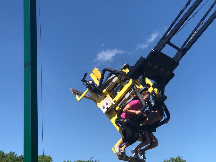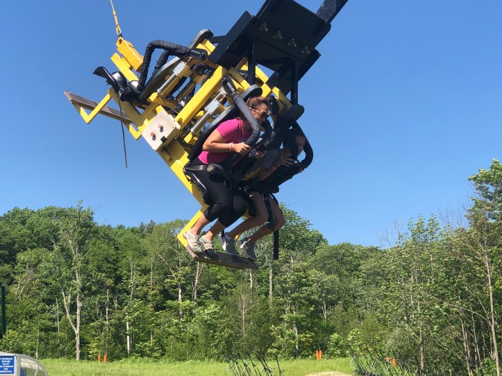 It was very pretty with Boston in the background! We studied the view and went back to the hotel to pack up and hit the road! To Vermont!!!! We were on the road for about 45 minutes before we stopped at a grocery store to get some snacks, some water, and a toothbrush for Julia! We were on the road for about another 45 minutes before we stopped for a bathroom break. After that it was a solid hour and a half before we hit an awesome adventure park. It was named… Bromley. I’m not trying to make you jealous but I might have to to get the point of how amazing it was. Bromley had a Giant Swing ride. This ride sits four people. Then you get lifted, you drop and swing!