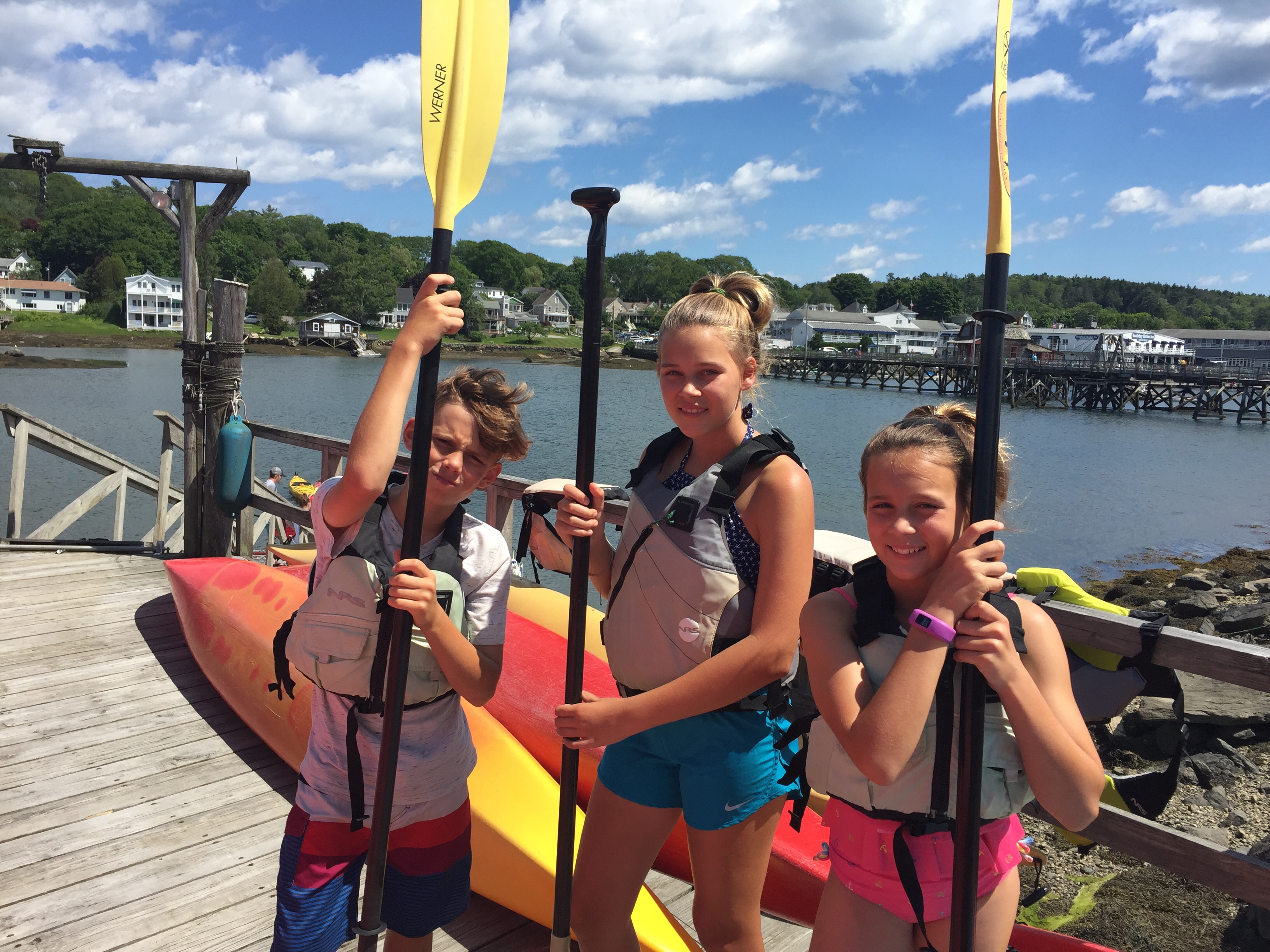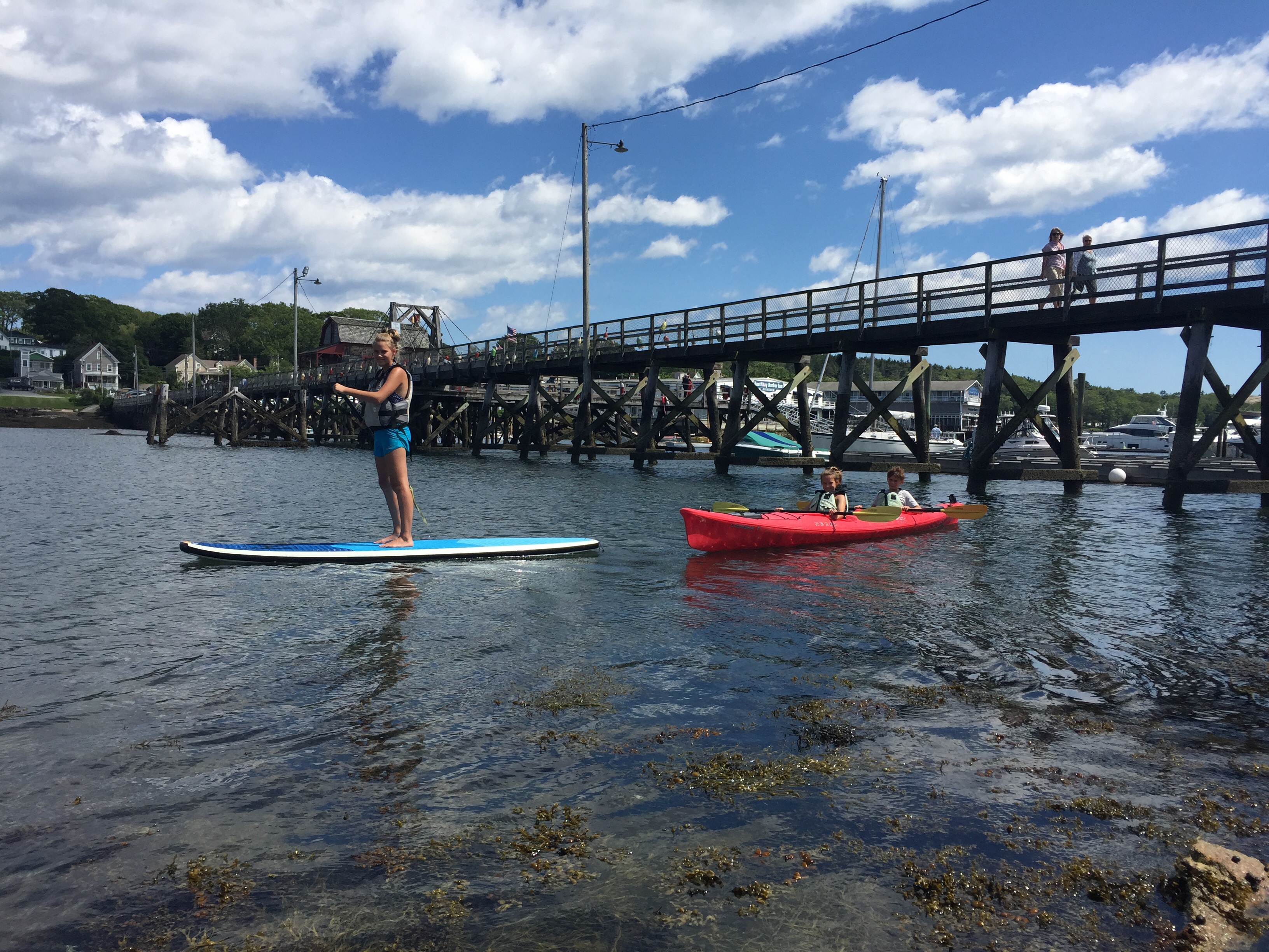 My siblings and I left lunch early to get into our bathing suits. We planned on renting a kayak and a paddle board. So, after lunch that is exactly what we did. We rented a tandem kayak and a stand up paddle board for an hour. We rotated both of the rentals so we all got a chance to use them. We stayed in the harbor and played around in the water while Mommy and Daddy sat on the rocks and read.