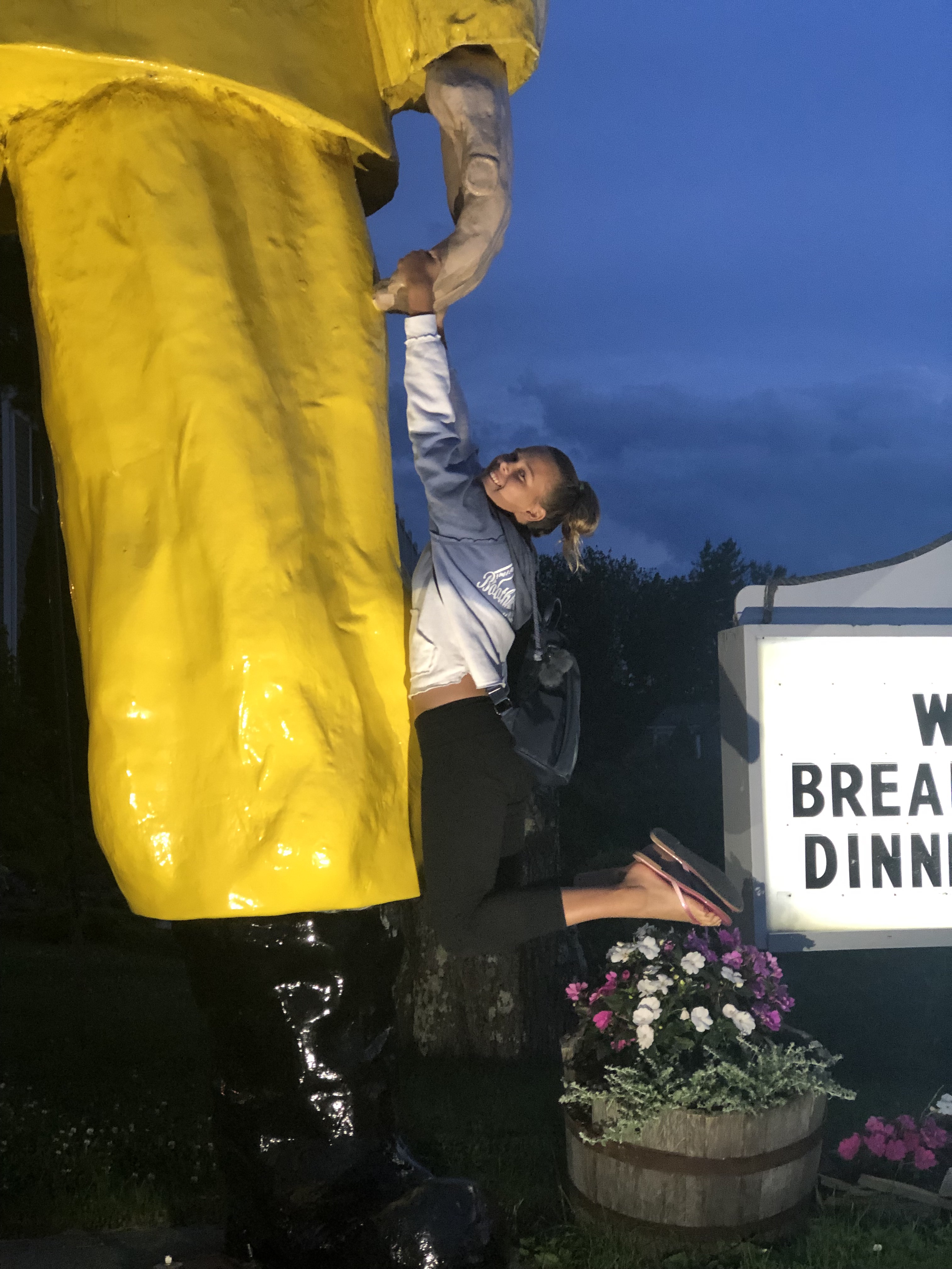 We got into Maine pretty late last night. We had some cookies and soda when we got to Aunt Sandy’s house. Her house was beautiful and looked out over the bay. Aunt Sandy and Uncle Okee live in Boothbay Harbor, Maine. At night the town and harbor is all lit up so it looks gorgeous.