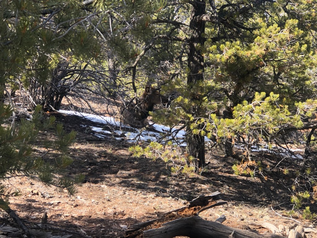 We spent the day exploring the Grand Canyon. We hiked to Shoshone Point. We ran across some elk grazing on the trees or resting in the shade.