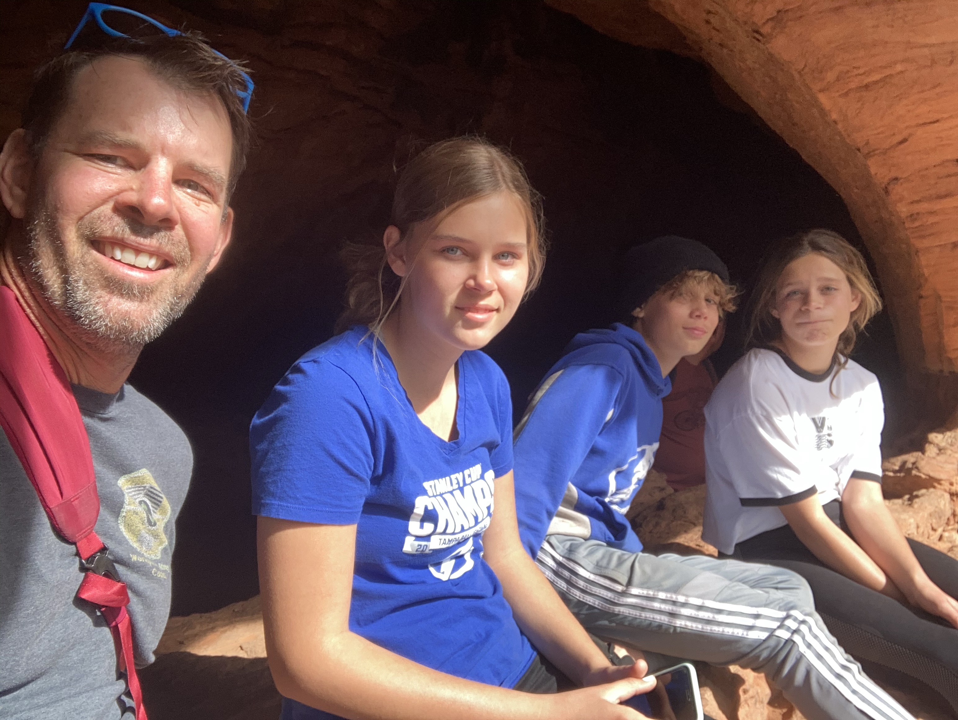 After a couple of hours of rock hopping and posing for pictures set against the beautiful red rock, we set off for the main course…hiking in Sedona. The moms had a yoga hike scheduled and the dads were taking the kids on a hike to the cave.