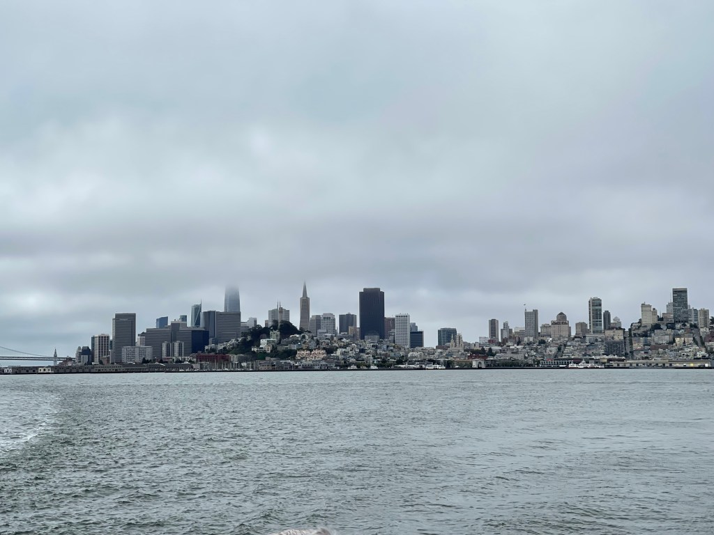 Our Alcatraz City Tour left at 8:45 a.m., which was a piece of cake for us since we were still on east coast time being our first full day in Cali. We hiked from our stay at the Hilton Downtown – Financial District to Pier 33. The sky was gray and the wind whipped around us as we cruised across the bay. The view of San Francisco was quite a sight.