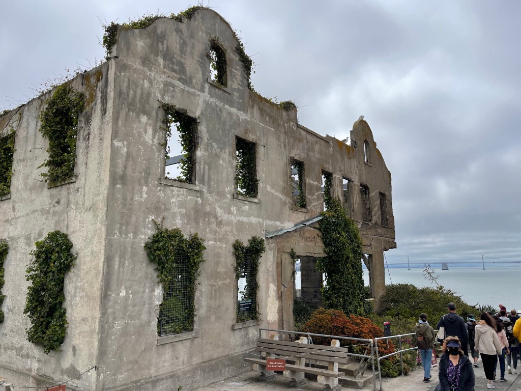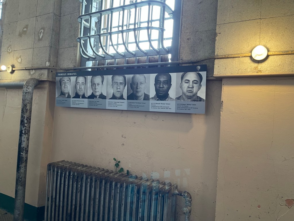 We heard stories of Al Capone (aka Scarface) and Robert “The Birdman” Stroud. We entered Cell Block “D” and a cell once used for solitary confinement. We learned about the three men who escaped Alcatraz. Frank Morris, John Anglin and Clarence Anglin posed fake heads in their beds and dug holes in the concrete walls with spoons to escape. None of the three escapees were ever located. They are still considered fugitives. Did they swim across the cold bay waters to land? Did they get eaten by sharks or drown? Was someone waiting in the bay to take them to freedom? We don’t know.