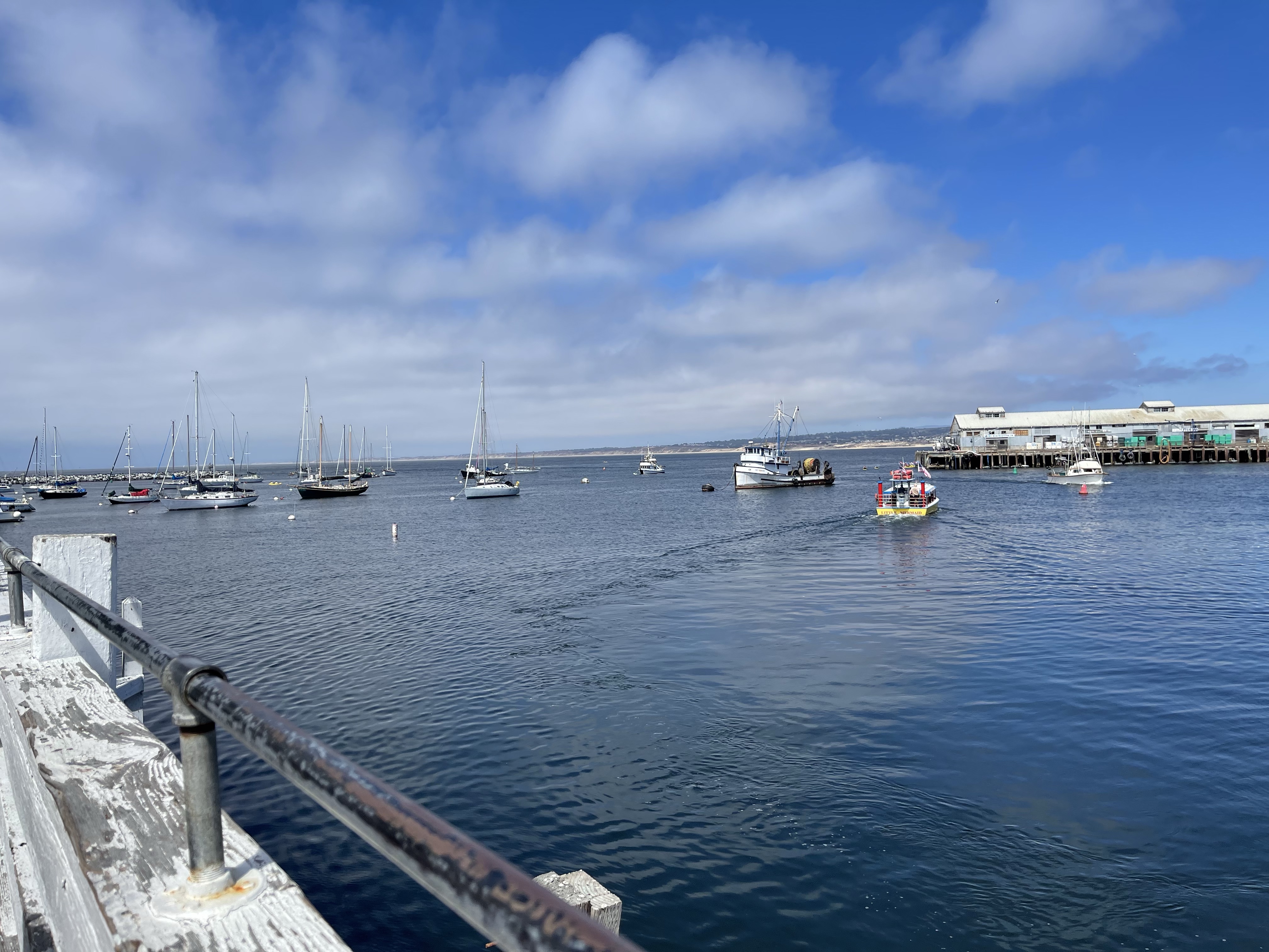 After some time enjoying the coast, we hiked out and hit the road again transfixed by the coastline. Next stop – Monterey – for lunch. We landed on the Fisherman’s Monterey Wharf, which bustled with tourists, food markets and whale tour hustlers. Dying for some seafood – at least all of us but Jonah who had practically ate a burger everyday – we found Domenicos on the Wharf. We were seated at a table near the windows where we had a great view of the marina and even got to watch a seal or two slip and slide through the water.