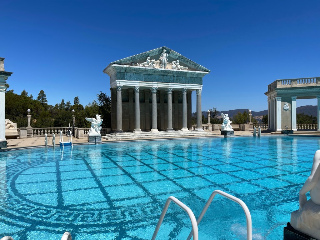 We started off that day leaving Paso Robles and headed to L.A. but we couldn’t leave without visiting this amazing castle we heard so much about. When we got there, we checked in and then we got put on a bus and traveled along the 5-mile driveway. Such beautiful views from the winding road. The second we arrived, Julia and I knew that in the future this would be our home, well… our vacation home. The outside was absolutely stunning. Our tour included 2 pools, and the main/entertainment rooms. We started with visiting the outdoor pool. It was huge! It had many cool statues. This was the second sign that we HAD to buy this house. I mean look at it!
